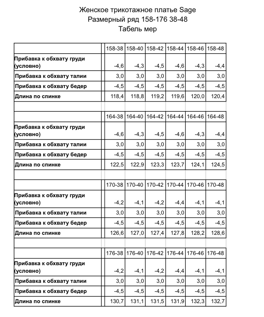 Обхват бёдер: -4.5см (отрицательная прибавка)