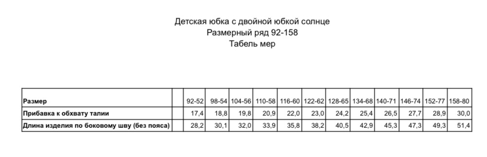 Юбка «солнце» в два слоя – верхний слой короче нижнего. Пояс притачной, с резинкой.